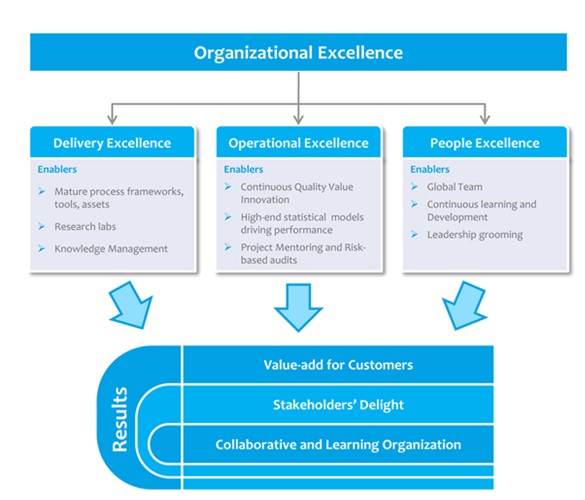 Excellence enablers such as: mature process frameworks, tools, assets; knowledge management, continuous quality/value innovation; high-end statistical models driving performance; continuous learning & development; and leadership grooming help to catalyze teams, managers and professionals across hierarchies and locations to seamlessly execute projects and deliver solutions. Capabilities and best practices gained are shared in a highly collaborative work environment.